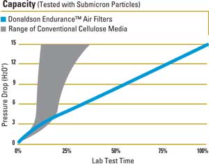 Donaldson Endurance™ Air Filters with exclusive nanofiber technology offer longer engine life, longer filter life, initial efficiency up to 99.99 percent and five times more capacity.