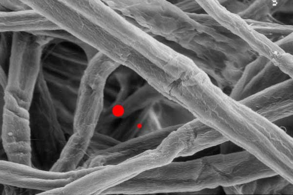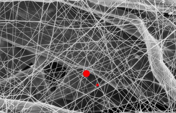 The nanofiber technology causes submicron contaminants to be held on the surface layer of smaller fibers. This filtration characteristic is only possible with this new type of air filtration technology. In on-highway applications, where the contaminant is primarily submicron in size, Donaldson Endurance filters cause less restriction than conventional filters with cellulose media. The smaller interfiber spaces of nanofiber technology have a higher efficiency and capture more contaminant.